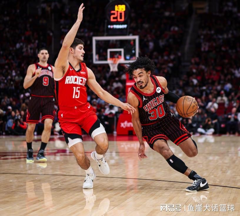 第三节比赛布泽利斯罚球2中1,随后阿门、奥科吉图突到内线得分,琼斯上反篮得分后火箭打出一波6-2,琼斯命中三分后阿门上篮得分,布泽利斯抛投命中后史密斯上篮得分,火箭反超1分。暂停后武切维奇投篮命中,戴维森内线得分后武切维奇勾手命中,戴维森命中三分后布泽利斯罚球得分,接下来杜兰特持续得分帮助火箭取得3分领先。末尾阶段亚当斯、阿门顶住公牛反扑,三节比赛结束火箭领先2分。第四节比赛武切维奇、杰伦-史密斯虽然能得分,但是亚当斯、申京、阿门也一直得分,火箭反而慢慢领先到6分,随后公牛一波7-0完成反超,接下来两队打得激烈,关键时刻阿门、史密斯命中三分帮助火箭咬住比分,而且后续史密斯持续得分,所以火箭稳压公牛,最终火箭拒绝爆冷获得比赛胜利。
